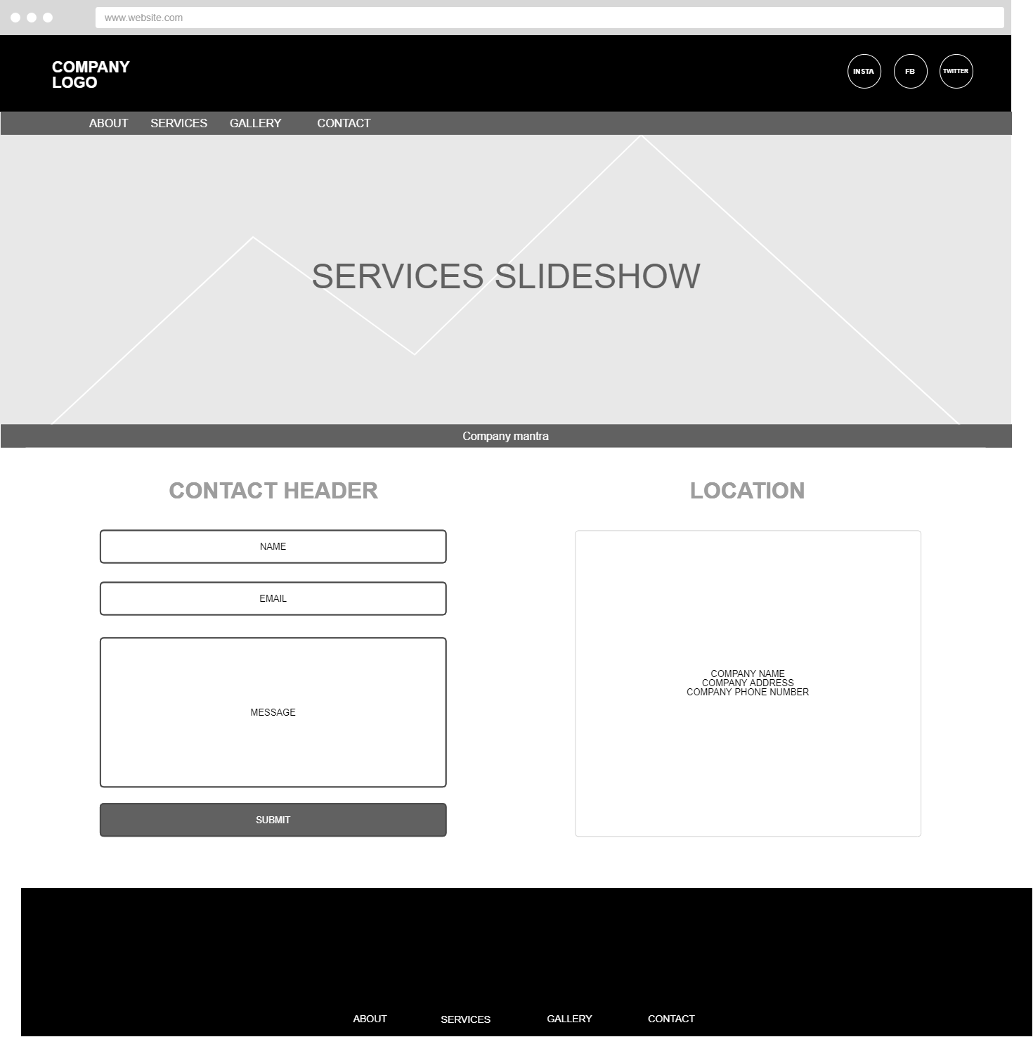 On the main landing page, I also plan to include a fading slideshow on the top banner of the site to display the company's services. This feature draws the attention of the user and sets the stage for the quality of services provided. I plan to transition between three different images so that it is not too overwhelming for the user and the transition will be set up to flow smoothly from one image to another.